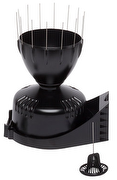 6. The rain gauge then goes above the radiation shield facing in a southerly direction. The bird spikes can be inserted into the holes at the top of the rain gauge as shown below. Please ensure the rain gauge is level when placing the weather station in the ground. This can be achieved by removing the lid of the gauge and making sure the leveling bubble is within the black circle. This is outlined below. Whilst the lid is off, please remove the cable tie which stops the tipping mechanism from working. The solar radiation sensor can be connected to the front of the rain gauge. This can be done using the mount and screws provided.