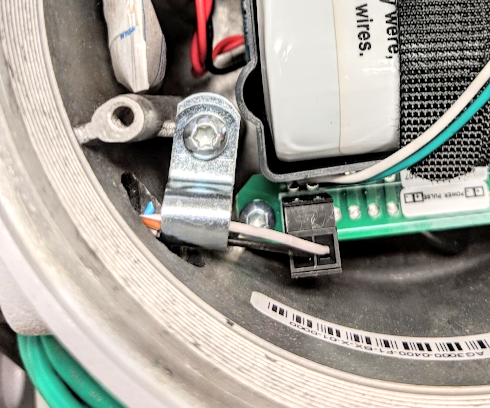 - Using a 2.5mm Allen wrench, loosen the metal clamp. Insert Wildeye cable through Seametrics gland and through metal clamp.