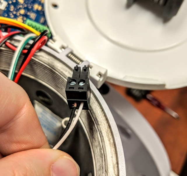 - Strip the wires back on the cable, black and white wires only.