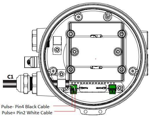 To determine the pipe size to set the pulse, use the sticker on the side. The diameter of the meter is the first 2 numbers after either AG90 or AG3000. In this example the meter is 08, whic